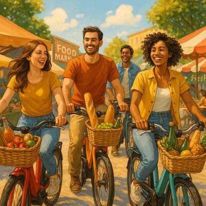 For example, imagine cycling to a farmer’s market on a Saturday morning. You can park your ebike right next to the stalls, pick up fresh produce, artisanal bread, or locally made cheese, and head home without worrying about heavy bags. Most ebikes have baskets or panniers that make carrying food simple and convenient.